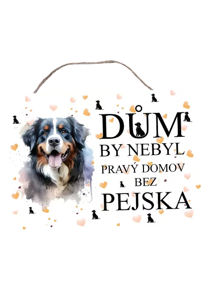 Plechová cedulka vel. 20x15cm s nápisem "DŮM BY NEBYL PRAVÝ DOMOV BEZ PEJSKA".