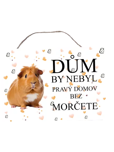 Plechová cedulka vel. 20x15cm s nápisem "DŮM BY NEBYL PRAVÝ DOMOV BEZ MORČETE".