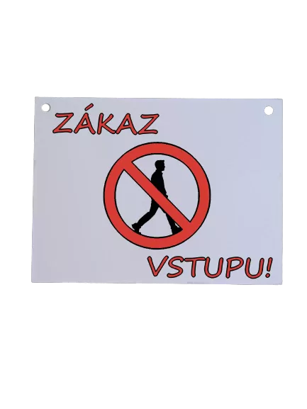 Plechová cedulka vel. 20x15cm s textem "ZÁKAZ VSTUPU!", kterou lze upevnit na hrazení výběhu, vrata, či kamkoli jinam (cedulka má předvrtané 2 otvory v horních rozích).