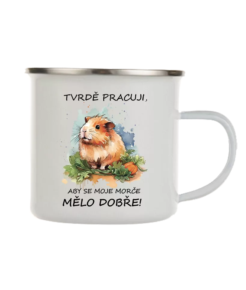 Originální keramický glazovaný hrnek s motivem "Tvrdě pracuji, aby se moje morče mělo dobře".