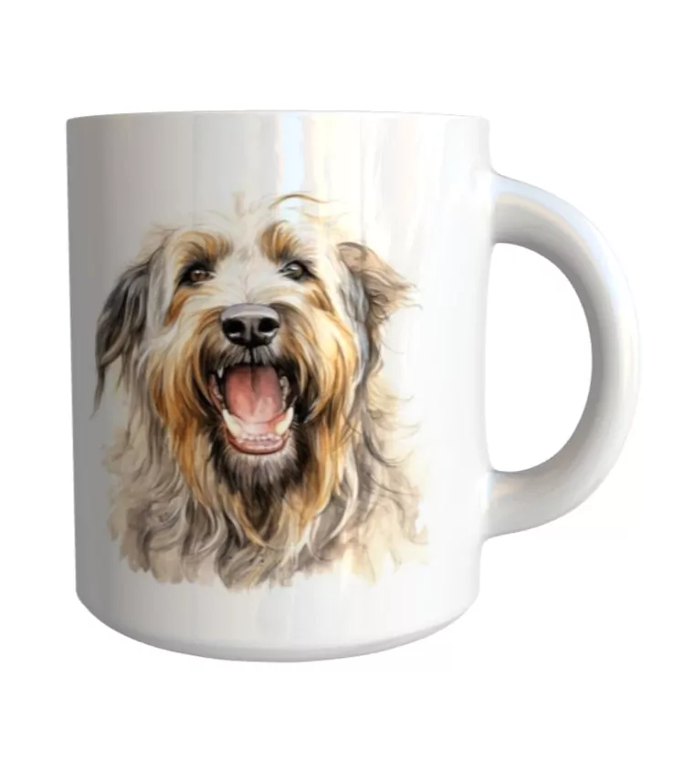 Originální keramický glazovaný hrnek s motivem psa plemene briard.