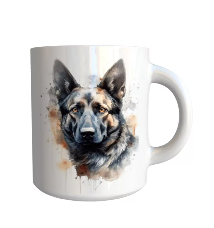 Originální keramický glazovaný hrnek s motivem psa plemene německý ovčák.