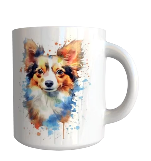 Originální keramický glazovaný hrnek s motivem psa plemene papillon.