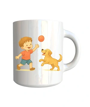Originální keramický glazovaný hrnek s motivem chlapce s pejskem.