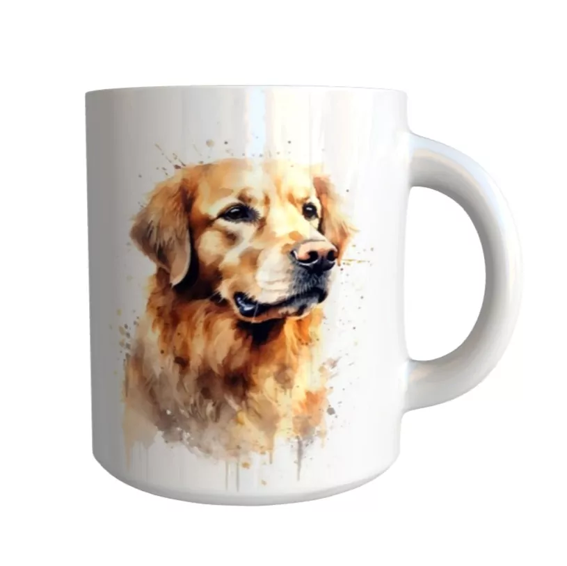 Originální keramický glazovaný hrnek s motivem psa plemene zlatý retrívr.