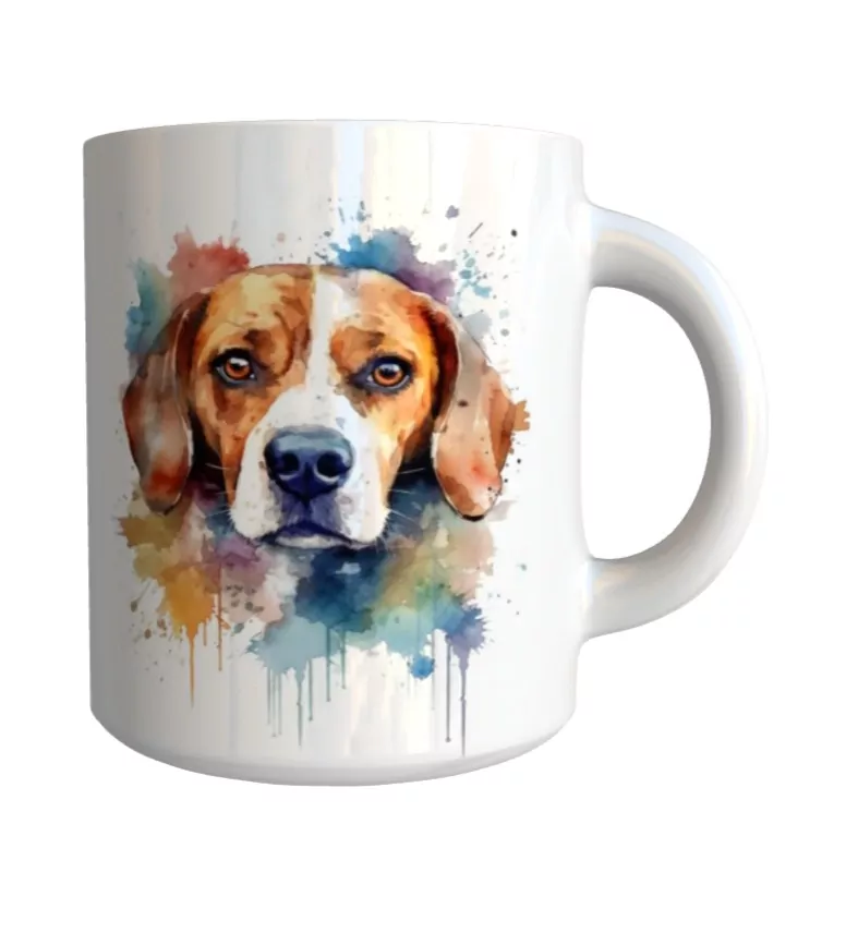 Originální keramický glazovaný hrnek s motivem psa plemene bígl.