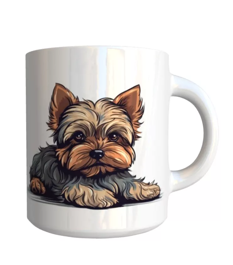 Originální keramický glazovaný hrnek s motivem psa plemene jorkšírský teriér. Objem hrnečku je 320 ml.