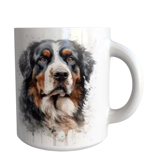 Originální keramický glazovaný hrnek s motivem psa plemene bernský salašnický pes.