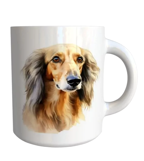 Originální keramický glazovaný hrnek s motivem psa plemene saluki.