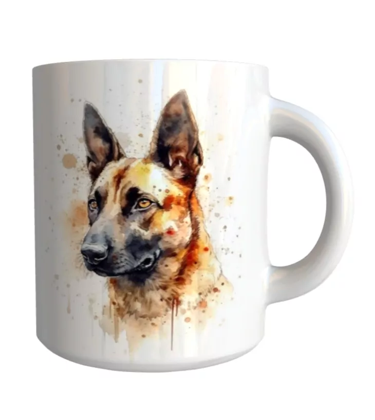 Originální keramický glazovaný hrnek s motivem psa plemene belgický ovčák - malinois.