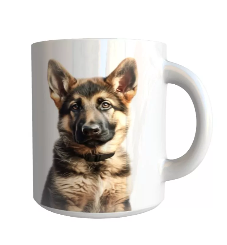 Originální keramický glazovaný hrnek s motivem psa plemene německý ovčák.