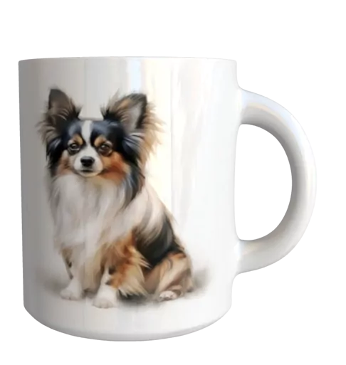 Originální keramický glazovaný hrnek s motivem psa plemene papillon.