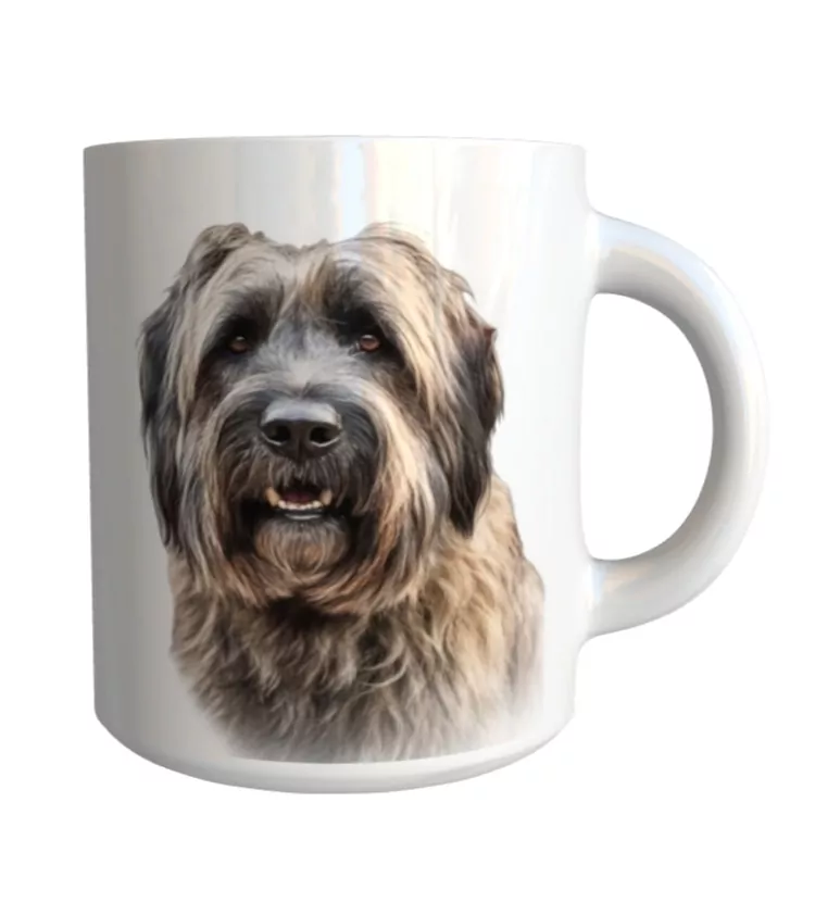 Originální keramický glazovaný hrnek s motivem psa plemene briard.