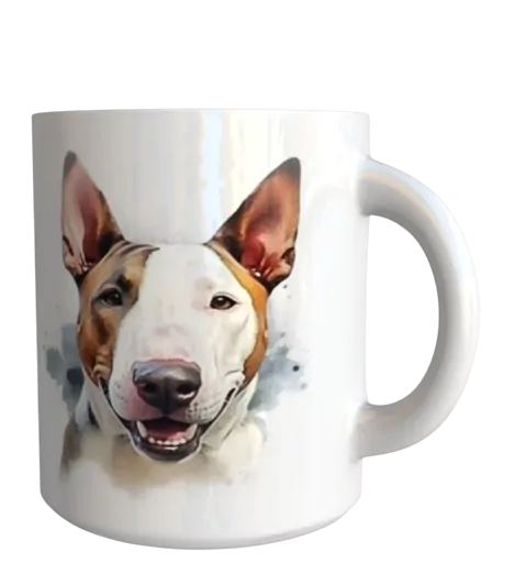 Originální keramický glazovaný hrnek s motivem psa plemene bulteriér.