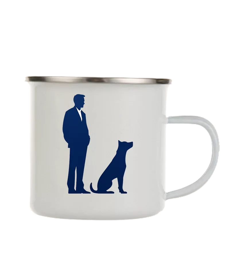 Originální keramický glazovaný hrnek s motivem muže a psa.