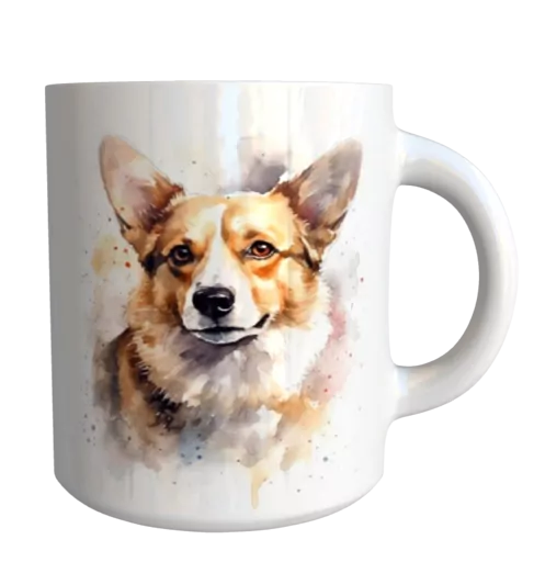 Originální keramický glazovaný hrnek s motivem psa plemene welsh corgi.