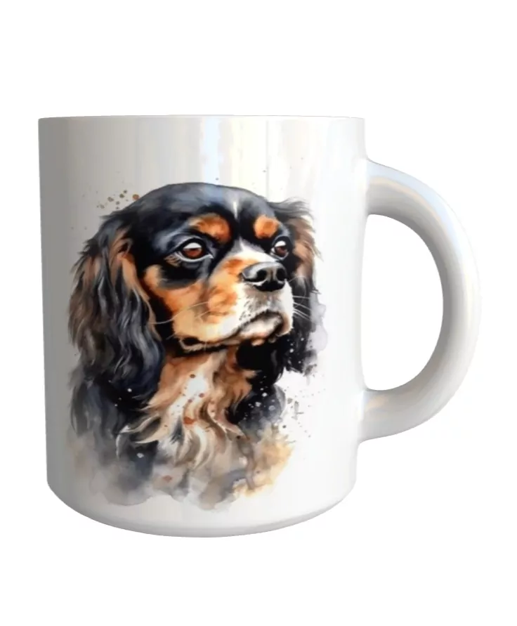 Originální keramický glazovaný hrnek s motivem psa plemene kavalír king charles španěl.