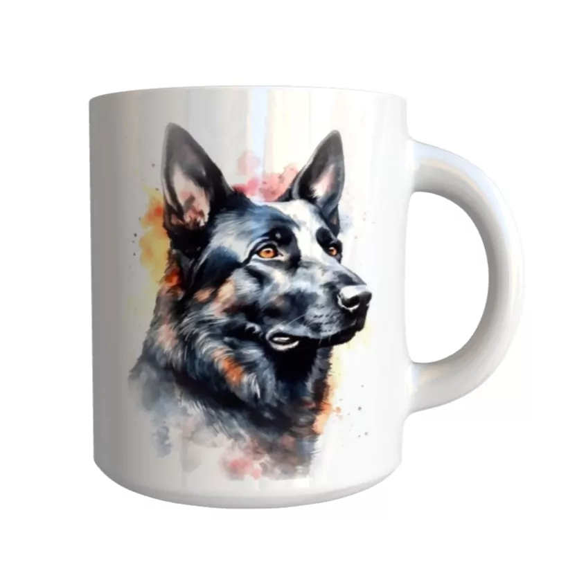 Originální keramický glazovaný hrnek s motivem psa plemene německý ovčák.