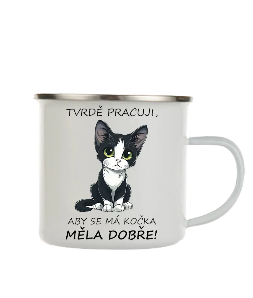 - Hrnek "Tvrdě pracuji, aby..." (kočka)