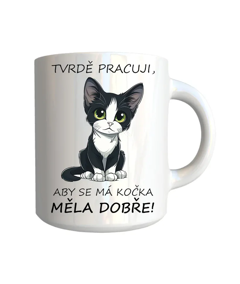 - Hrnek "Tvrdě pracuji, aby..." (kočka)