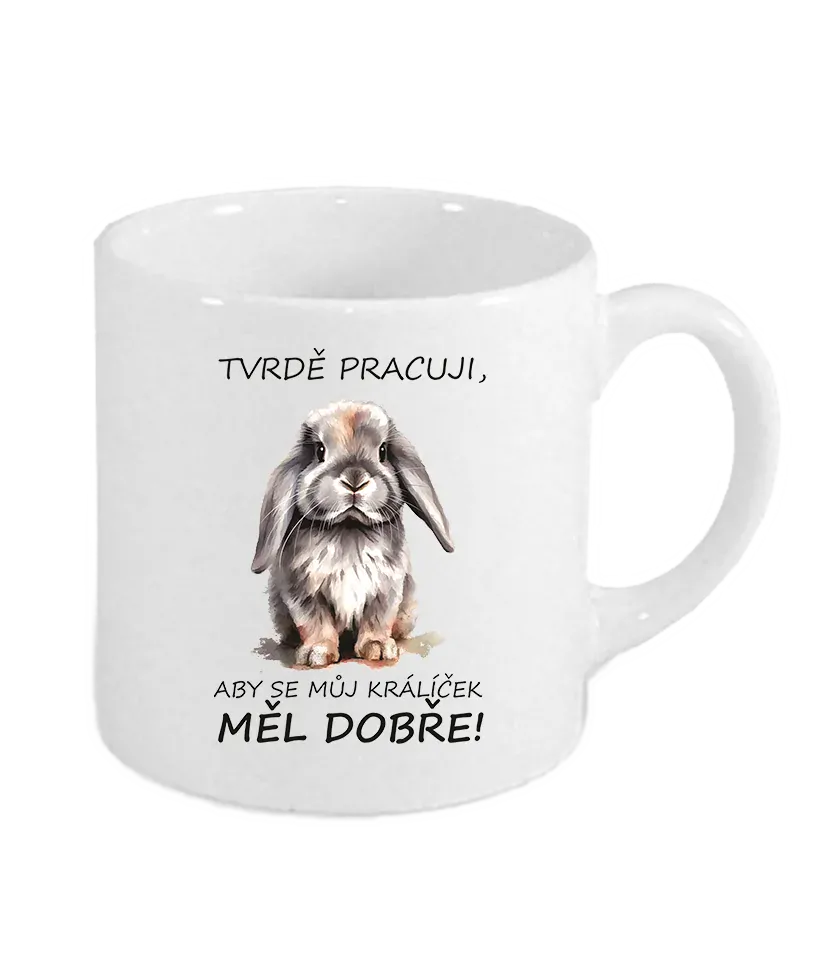 Originální keramický glazovaný hrnek s motivem "Tvrdě pracuji, aby se můj králíček měl dobře".