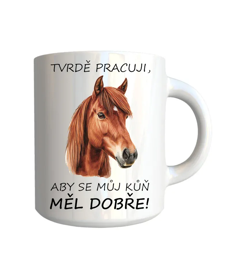 - Hrnek "Tvrdě pracuji, aby..." (kůň)
