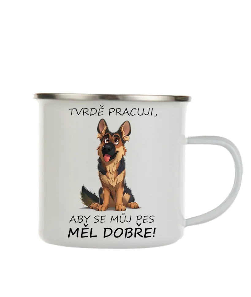 4. Hrnek "Tvrdě pracuji, aby..." (pes)