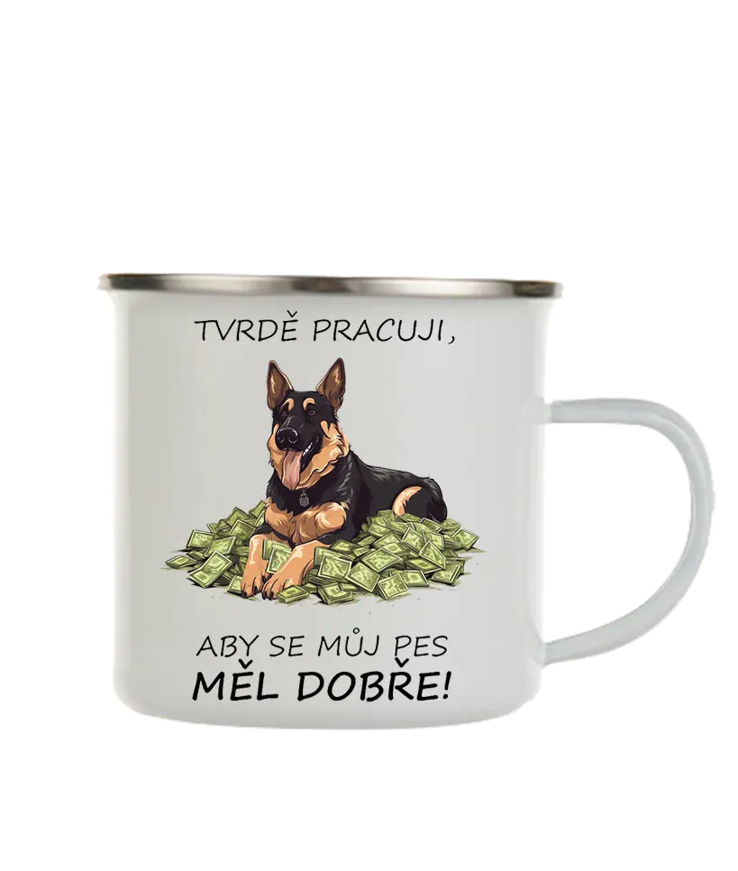 - Hrnek "Tvrdě pracuji, aby..." (pes)