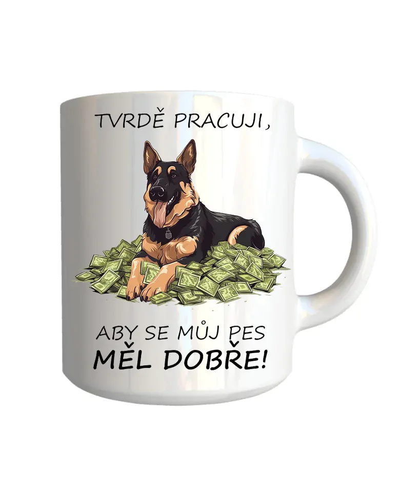 - Hrnek "Tvrdě pracuji, aby..." (pes)