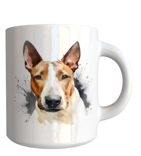 Originální keramický glazovaný hrnek s motivem psa plemene bulteriér.