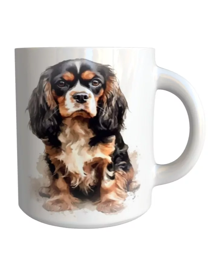 Originální keramický glazovaný hrnek s motivem psa plemene kavalír king charles španěl.