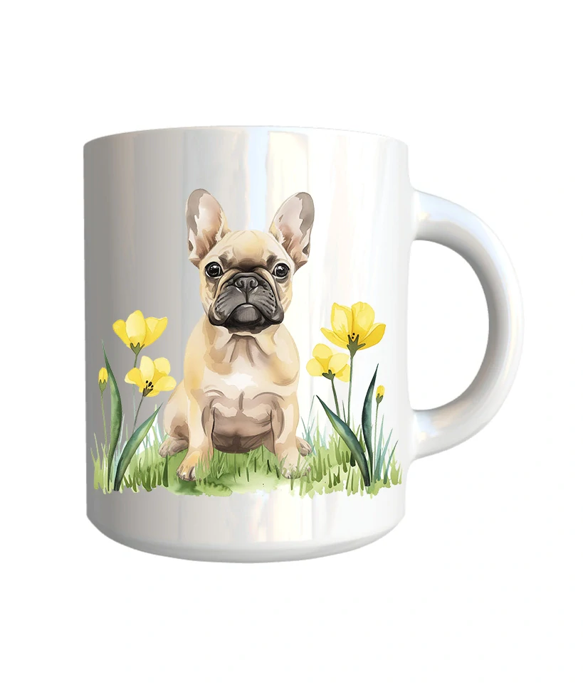 Originální keramický glazovaný hrnek s motivem psa plemene francouzský buldoček.