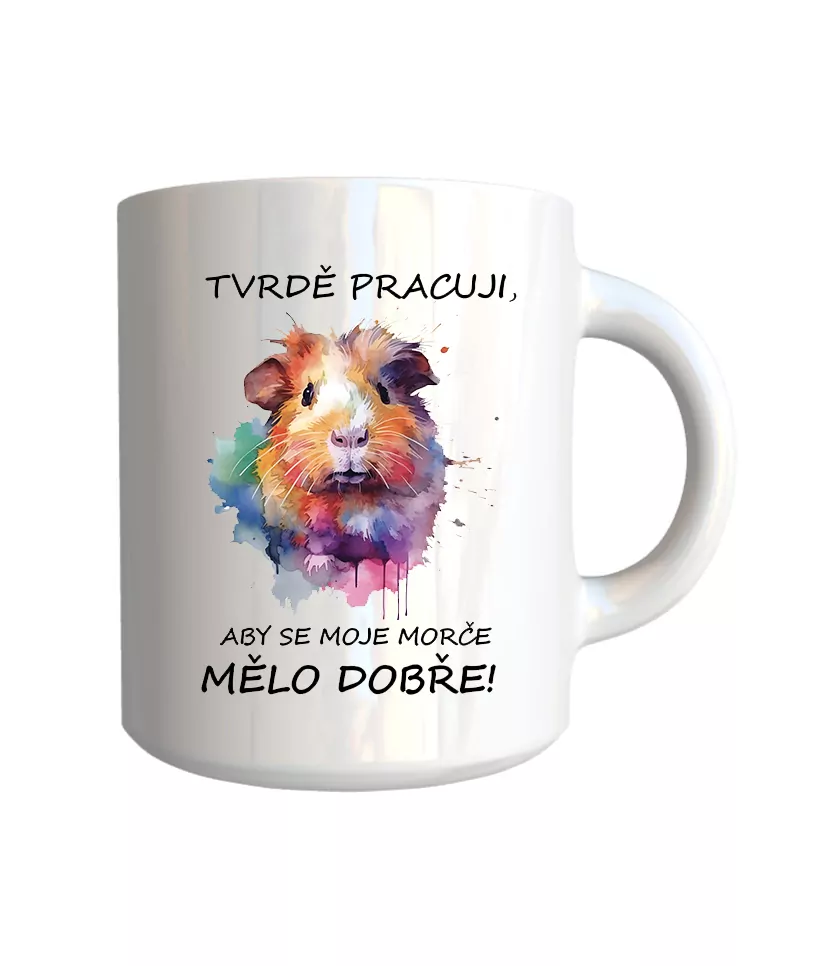 Originální keramický glazovaný hrnek s motivem "Tvrdě pracuji, aby se moje morče mělo dobře".