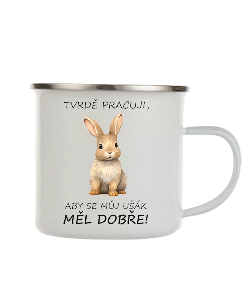 Originální keramický glazovaný hrnek s motivem "Tvrdě pracuji, aby se můj ušák měl dobře".