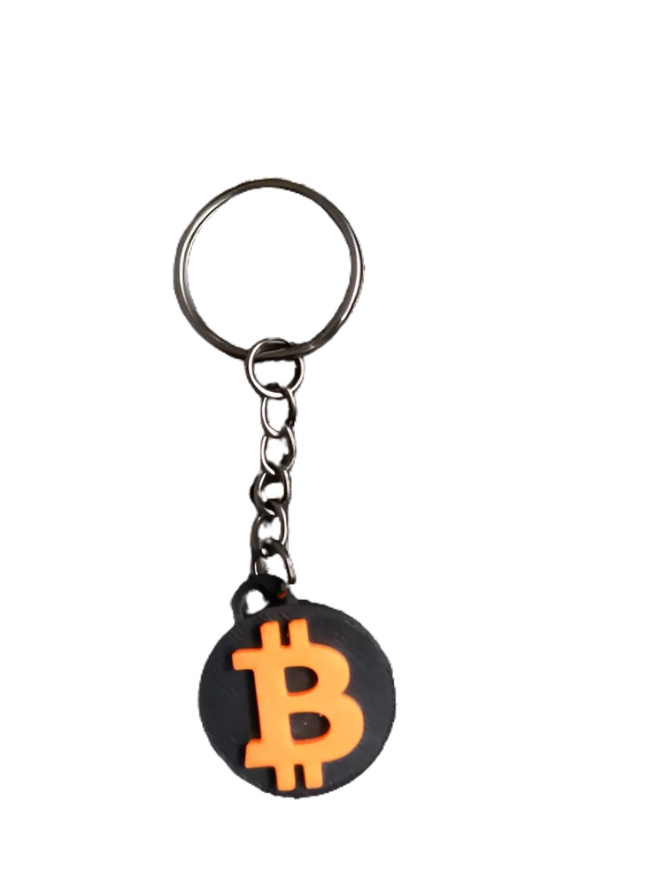Přívěsek na klíče s logem Bitcoin.