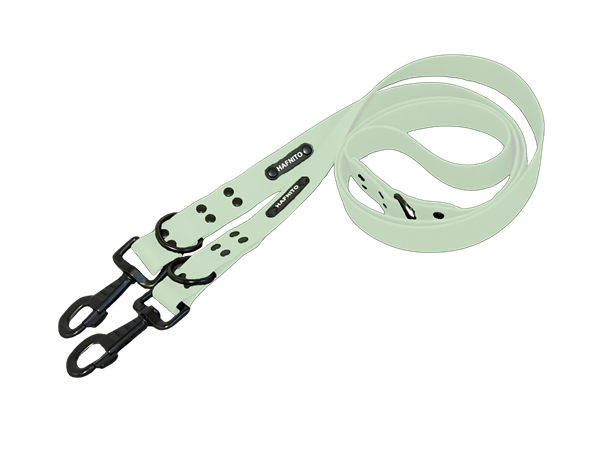 Vodítko je vyrobeno z pevného, voděodolného materiálu, který neabsorbuje pachy ani nečistoty. Díky svým vlastnostem se snadno čistí - stačí pouze opláchnout vodou, případně použít mýdlo a hadřík. Za pár minut je suché a připravené na další dobrodružství. Vodítko obsahuje kovovou karabinu a komponenty, které jsou kvalitní a dlouho vydrží. Věříme jim natolik, že na kovové součástky poskytujeme celoživotní záruku. Šíře popruhu je 2,5 cm.