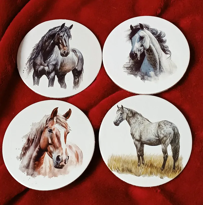 Sada 4 ks podtácků s motivem koní.