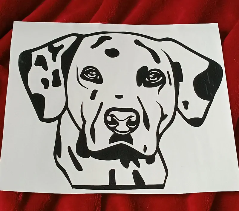 Samolepka na auto z černé vinylové folie s motivem dalmatina - 3 varianty.