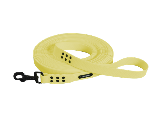 Vodítko je vyrobeno z pevného, voděodolného materiálu, který neabsorbuje pachy ani nečistoty. Díky svým vlastnostem se snadno čistí - stačí pouze opláchnout vodou, případně použít mýdlo a hadřík. Za pár minut je suché a připravené na další dobrodružství. Vodítko obsahuje kovovou karabinu a komponenty, které jsou kvalitní a dlouho vydrží. Věříme jim natolik, že na kovové součástky poskytujeme celoživotní záruku. Šíře popruhu je 2,5 cm.